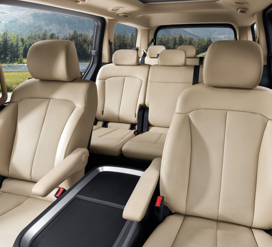 Вы можете выбрать оптимальный для себя режим работы автомобиля. Для этого достаточно переключить коробку передач в положение Drive. В Staria доступны следующие режимы: NORMAL — для комфортного ежедневного вождения; ECO — обеспечивающий экономичный расход топлива; и SPORT — с улучшенной динамикой и сокращённым временем разгона.